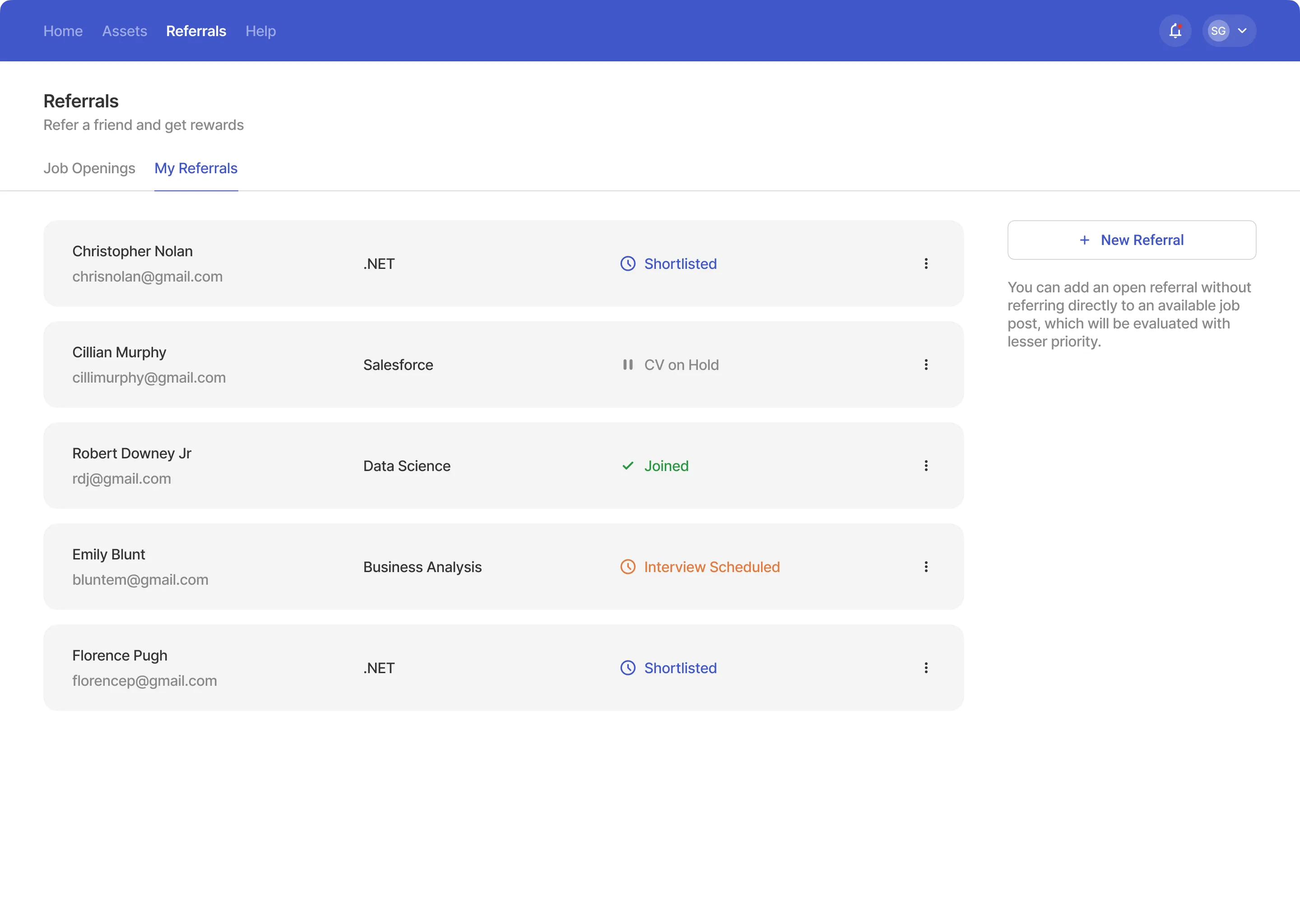 In addition to tasks, recruits can also do other things like manage their company assets and send in referrals.