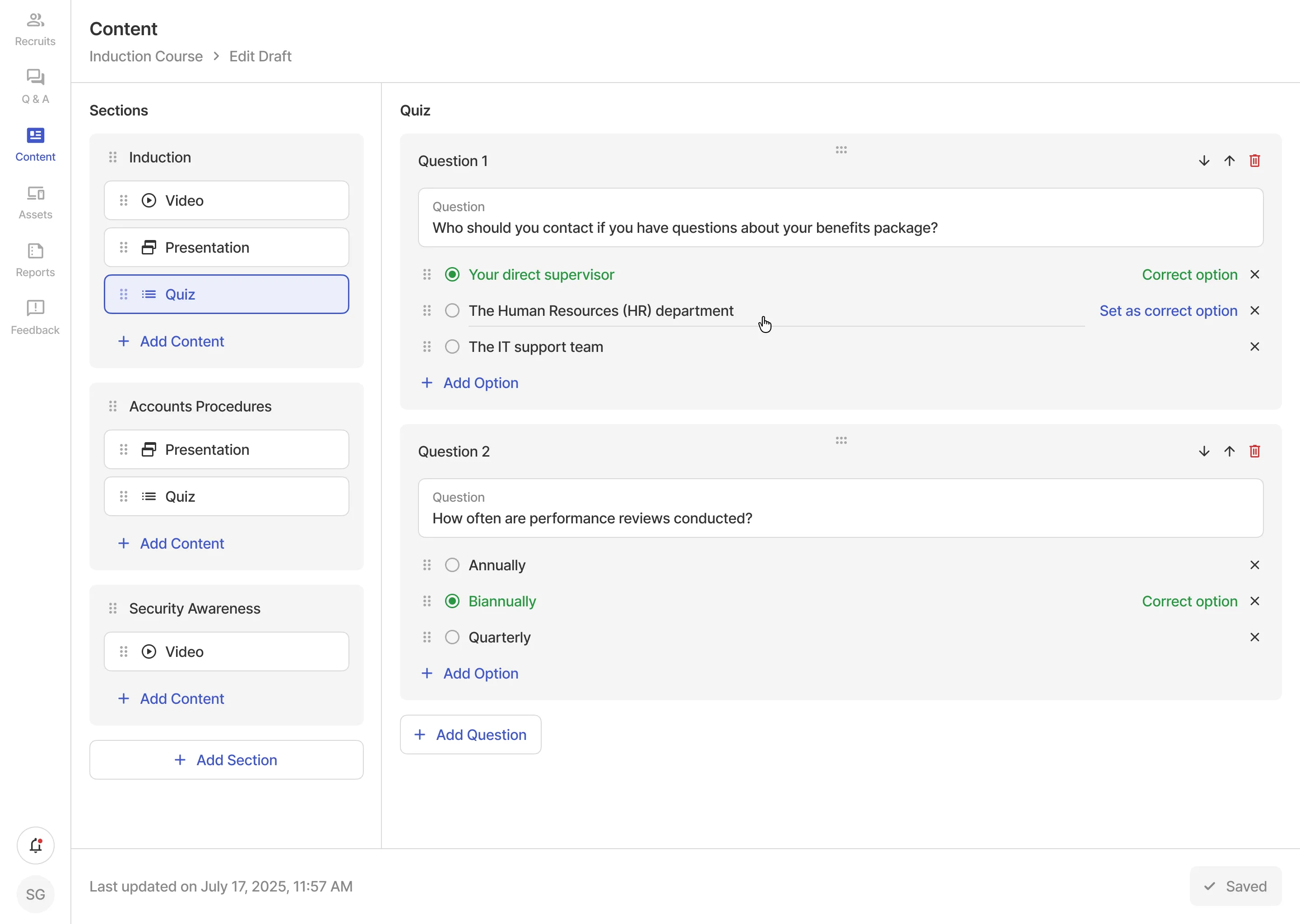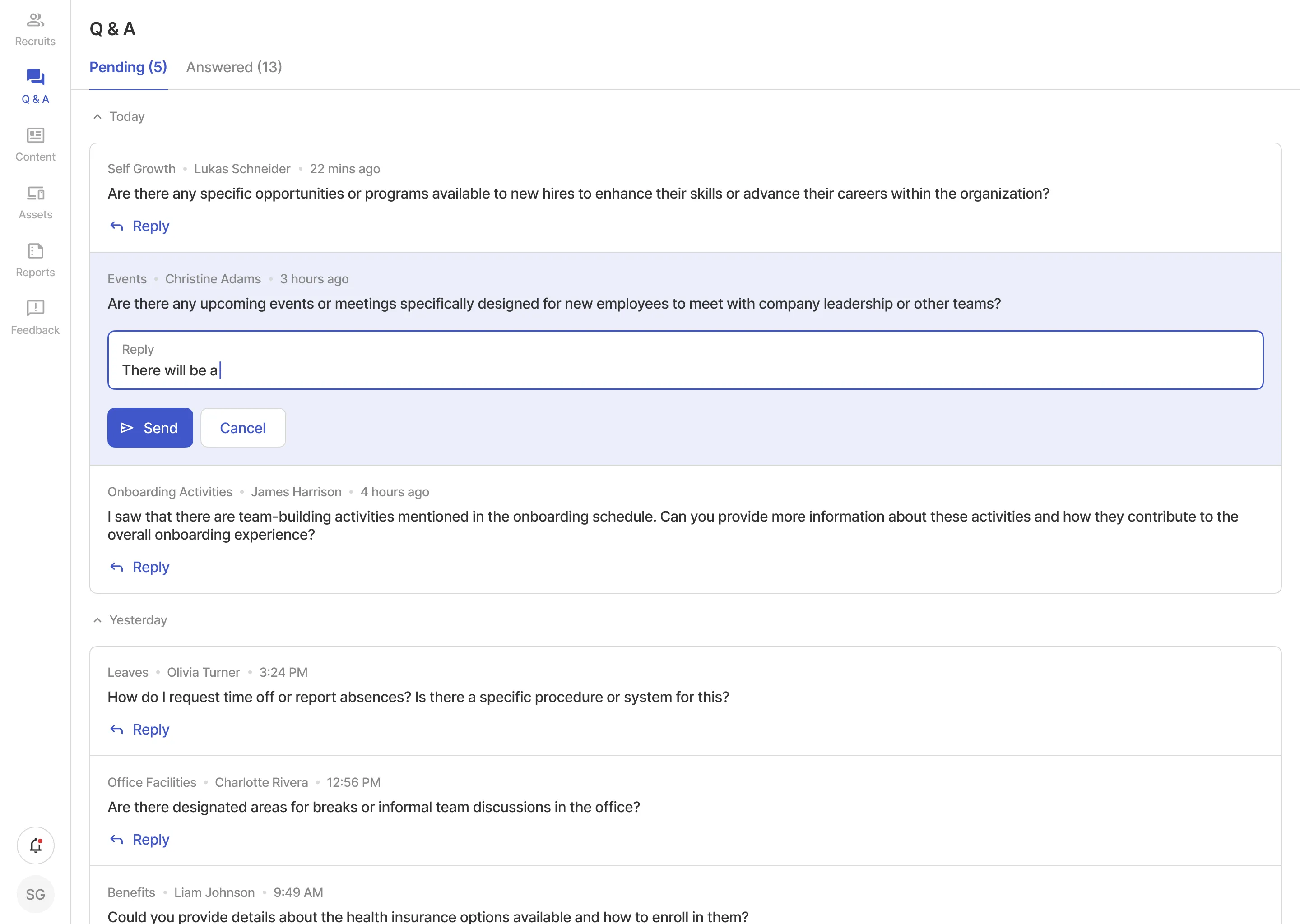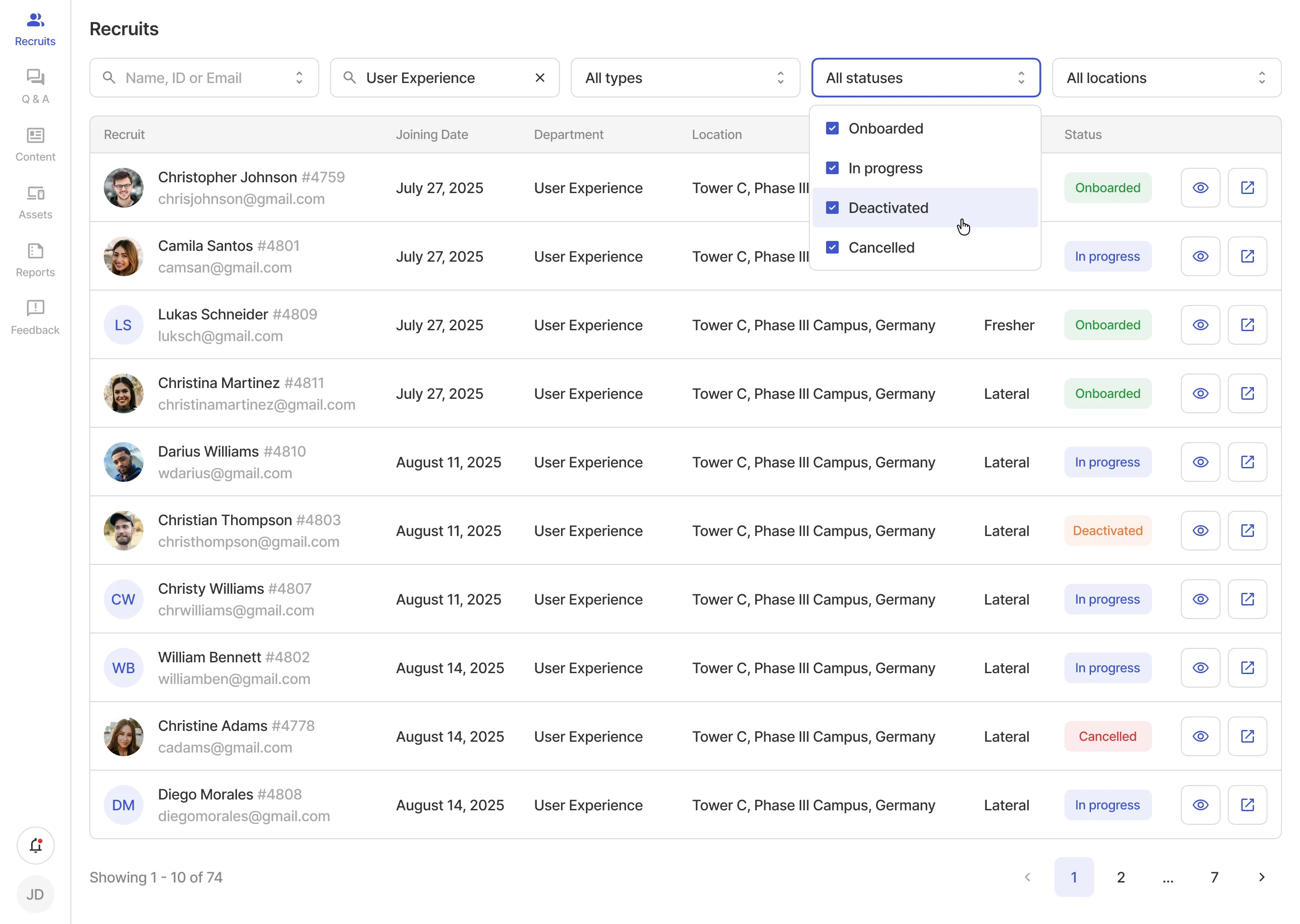 The recruitment staff can manage recruits' profiles, respond to queries, allocate assets, customize onboarding content and more.
